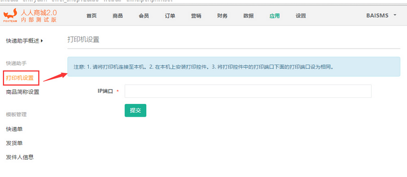 3.2 再配置后臺(tái)中的打印信息,應(yīng)用->快遞助手->打印機(jī)設(shè)置