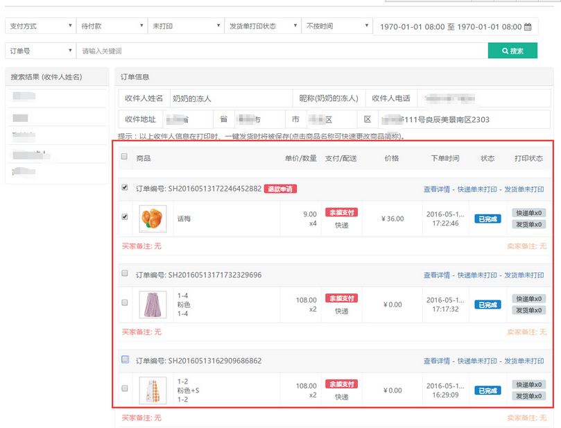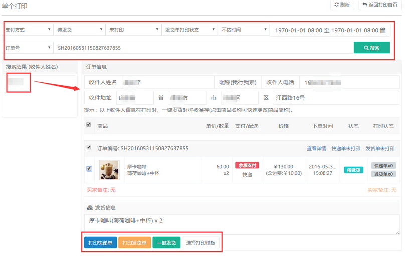 7.2先在左側(cè)搜索結(jié)果 根據(jù)收貨人獲得訂單