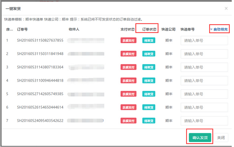 7.10填寫快遞單號(hào)(可使用自動(dòng)填充功能)